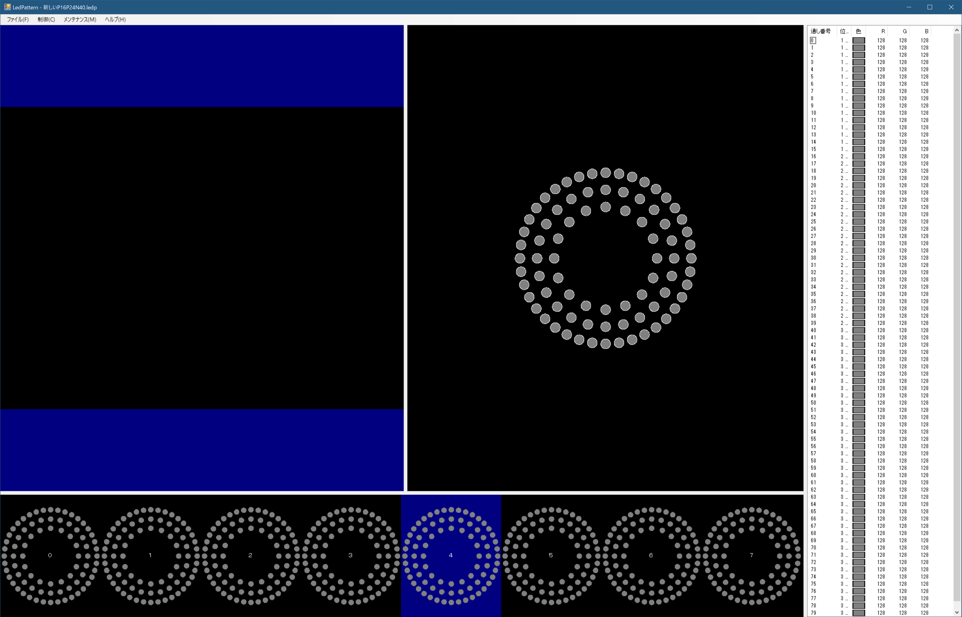 - 現在選択されているパターンの LED ごとの設定値の一覧です。